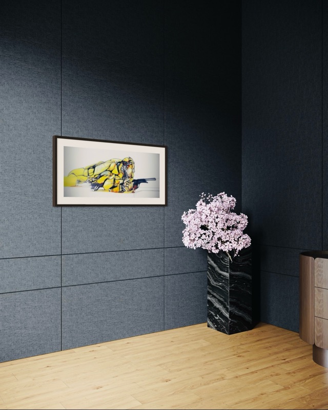 DE: Absent Face ist kein dekoratives Bild. Es ist ein Manifest, ein Fragment aus einer Zone, in der Mensch und Maschine kollidieren. Die Figur erscheint halb Soldat, halb Panzer, schwer und kantig, in ein grelles Gelb gehüllt und zugleich von dunklen Schatten zerschnitten. Das Gesicht fehlt – ausgelöscht, abwesend. Genau darin liegt die Härte des Werkes: Der Körper wird sichtbar, doch die Identität bleibt verschwunden.